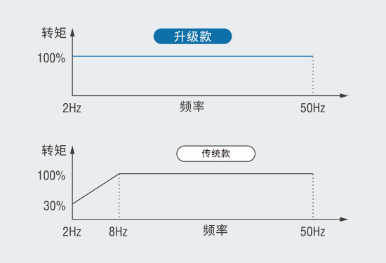 采用磁通電磁解耦控制技術(shù),即使頻率低至 2Hz,電機(jī)也能輸出 100% 額定轉(zhuǎn)矩,用戶無(wú)需為